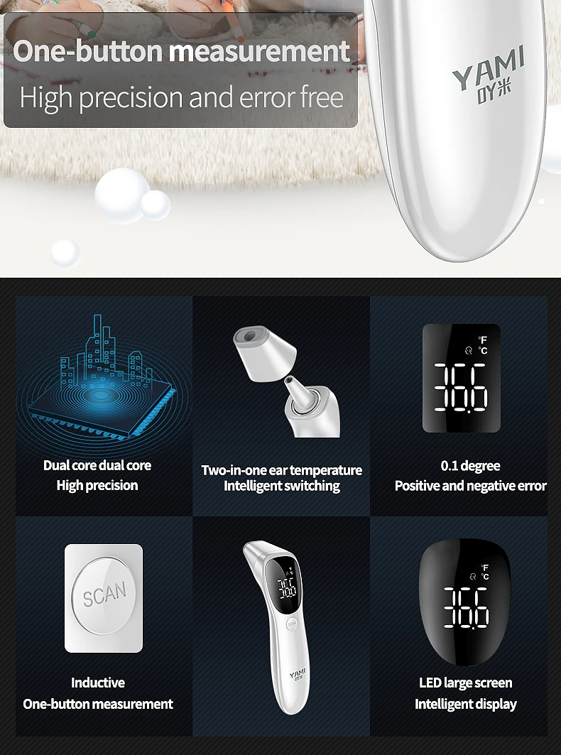 YAMI Digital Infrared Thermometer Non-contact Ear Forehead Dual Mode High Precision Thermometer